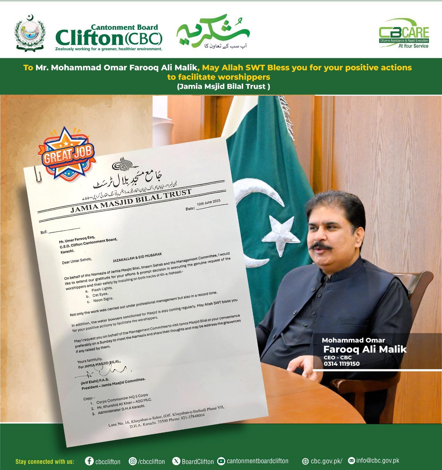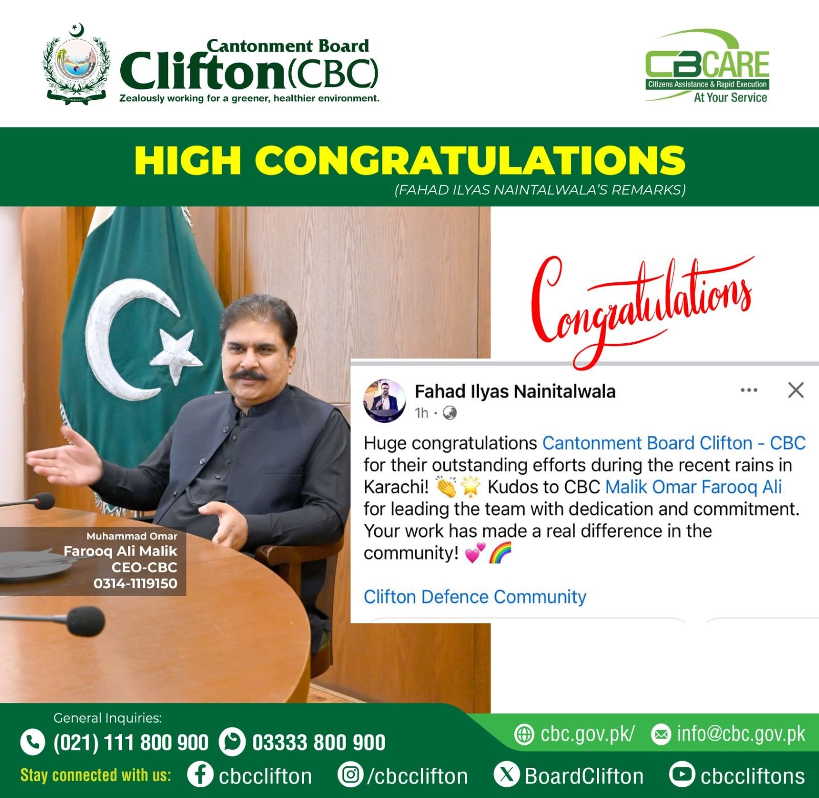 کنٹونمنٹ بورڈ کلفٹن نے ۲۷ اکتوبر کو “کشمیر یومِ سیاہ” کے طور پر منانے کے لیے ایک ریلی کا انعقاد کیا، جس کا مقصد بھارتی غیر قانونی قبضے کے شکار معصوم کشمیری عوام سے اظہارِ یکجہتی کرنا تھا۔ کشمیری عوام